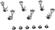 Set of six SG381 sealed-gear tuning machines in chrome finish with keystone (metal) 04 buttons and thumbscrews locking string posts. Gear ratio: 16:1. Attaching screw tab orientation offset at a 45 degree angle. Package includes nuts + washers + wood screws.